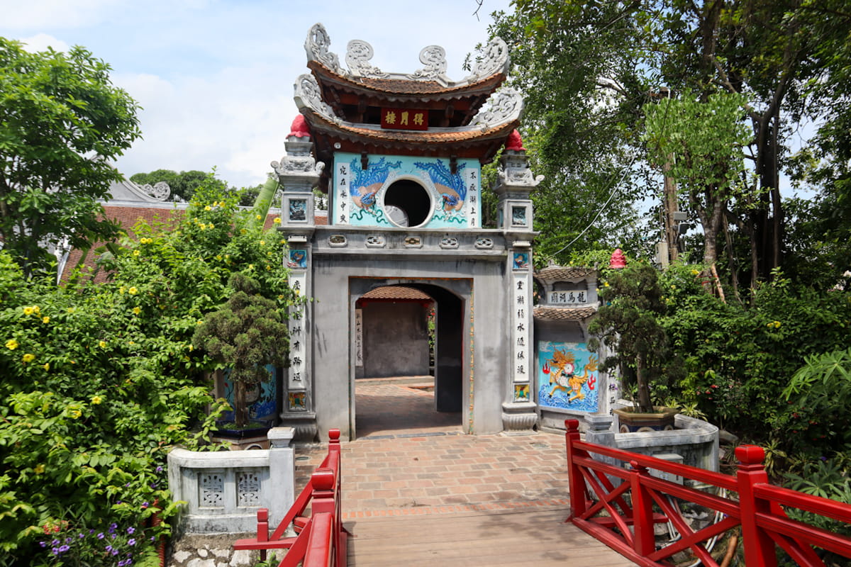 The temple was built in the 19th century in a traditional Vietnamese style, blending Confucian, Taoist and Buddhist influences. You can reach Ngoc Son Temple by walking across the Huc Bridge, a curved red wooden bridge that connects the shore to the island.